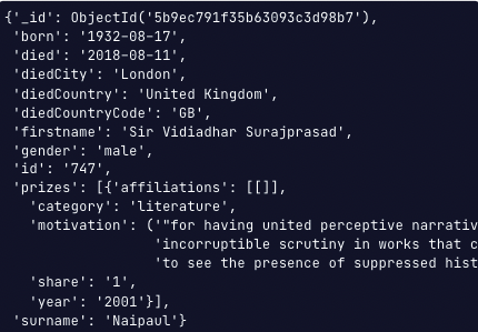 그런 다음 id 에 대해 동일한 값을 가진 문서에 대해 수상자 컬렉션을 쿼리합니다.