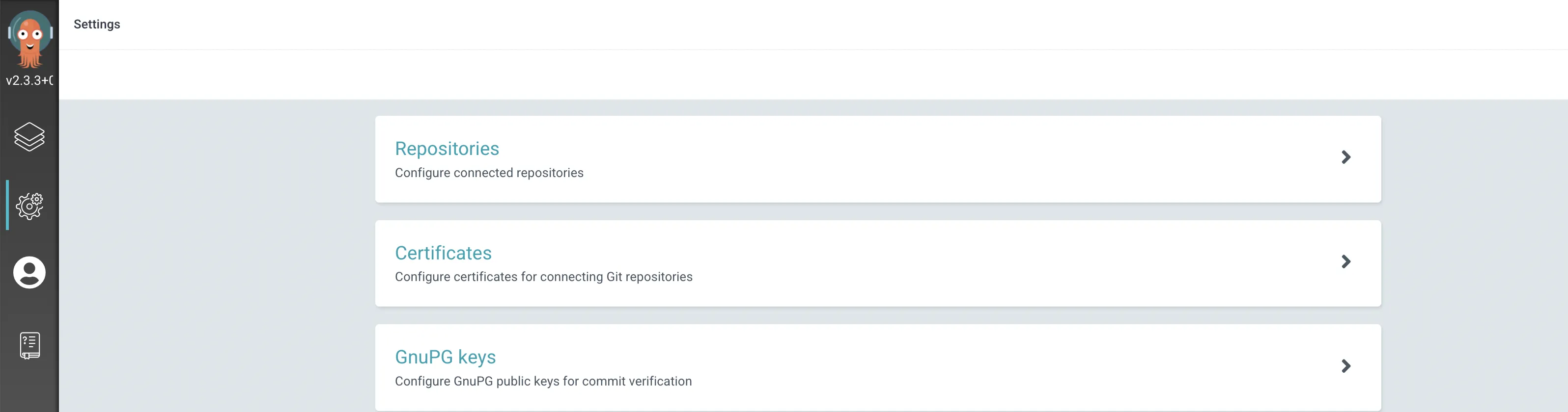 다시 argoCD에 접속해서 톱니바퀴모양의 설정을 들어가면 Repositories가 보이네요.