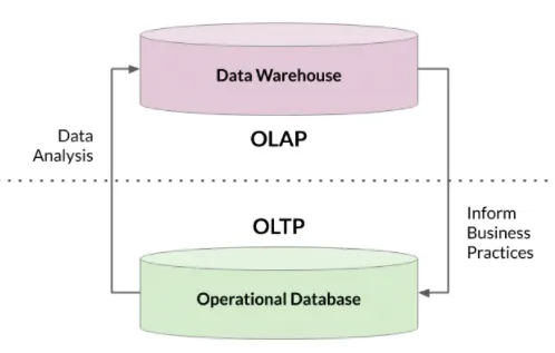 OLTP 데이터는 일반적으로 OLAP 데이터웨어 하우스를 만들기 위해 가져 와서 정리되는 운영 데이터베이스에 저장됩니다.
