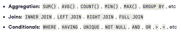 - RDBMS는 일반적으로 데이터 관리 및 엑세스를 위한 SQL을 사용합니다.