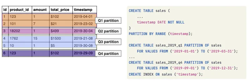 - 특정 시점에서 테이블을 여러 개의 작은 부분으로 분할하는 것이 합리적 일 수 있습니다.