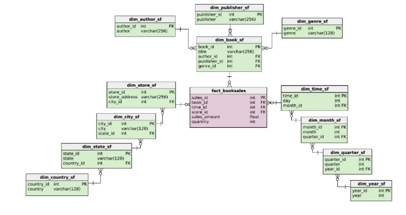 - 데이터 웨어 하우스를 위해 관계형 모델을 수정한 것