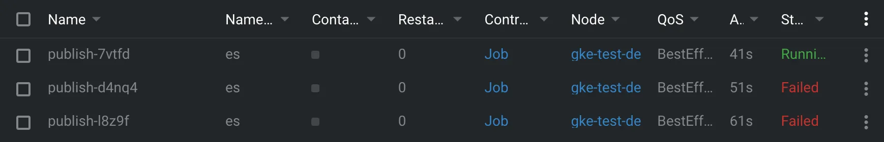 이를 GKE에서 사용을 하니, 당연히 오류가 났습니다. 이유는 권한 문제입니다. Credentials를 따로 지정하지 않았으니 당연한 결과입니다.