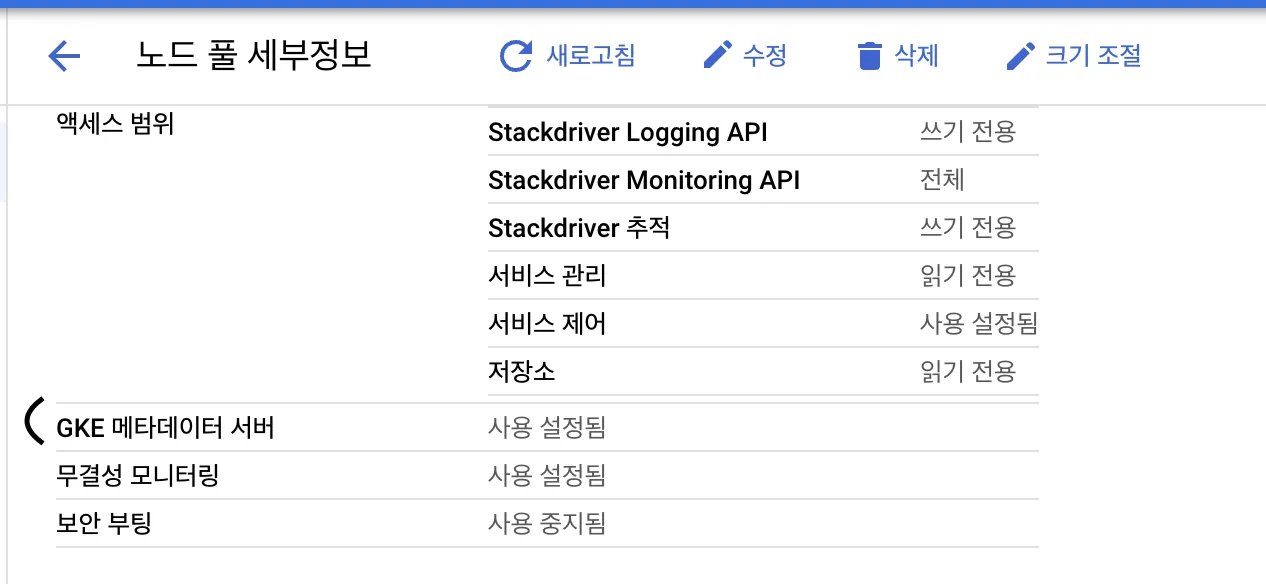 클러스터와 동일하게, GKE 메타데이터 서버 설정을 활성화 해주면 준비가 완료됩니다.