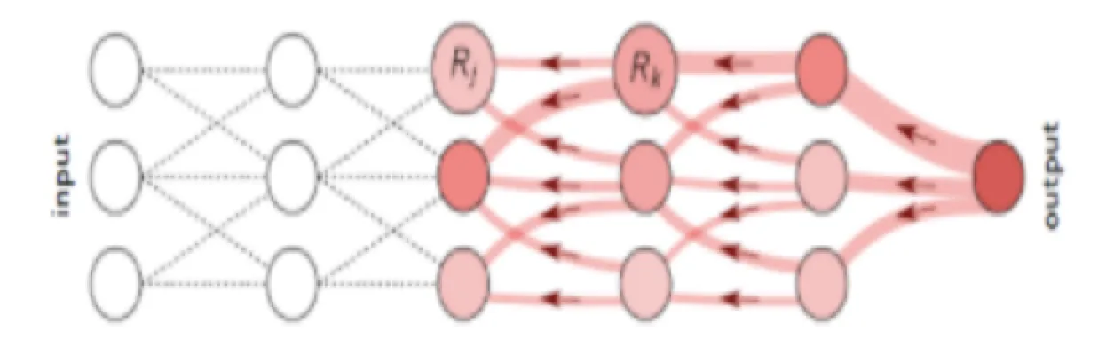 LRP를 통해 XAI를 구현하는 방법은 생각보다 간단합니다. 학습을 통해서 얻은 가중치와 편향값을 이용해서 각각의 Input layer 에서 Output layer에 영향을 끼치는 값을 계산하면 됩니다.