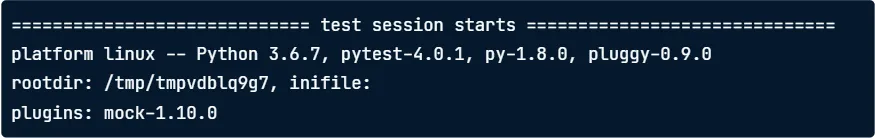 운영 체제, Python 버전, pytest패키지 버전, 작업 디렉토리 및 pytest 플로그인 정보가 출력