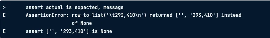 assert row_to_list("\t293,410") is none # AssertionError from this line